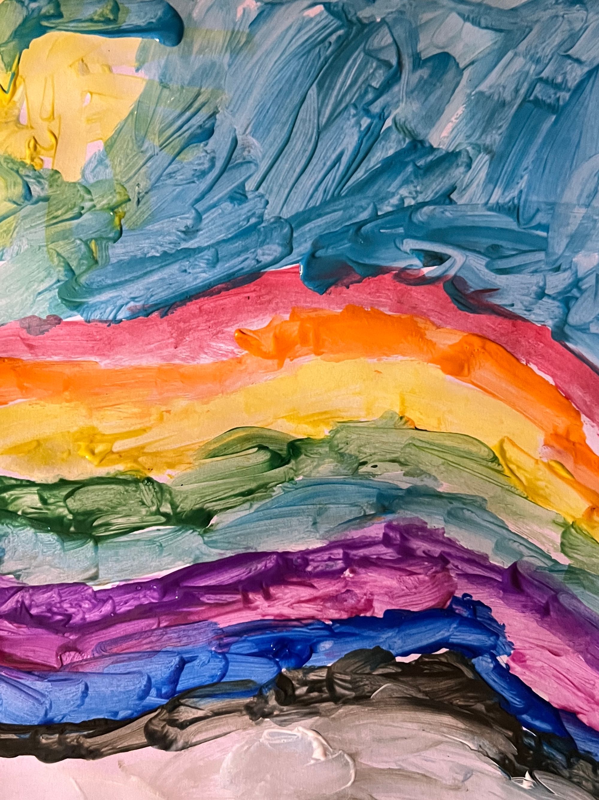 As I wrap up writing this, my 4-year-old appeared at my side. She handed me a still-wet painting: a rainbow. Rainbows have always held a special significance for me, with her.